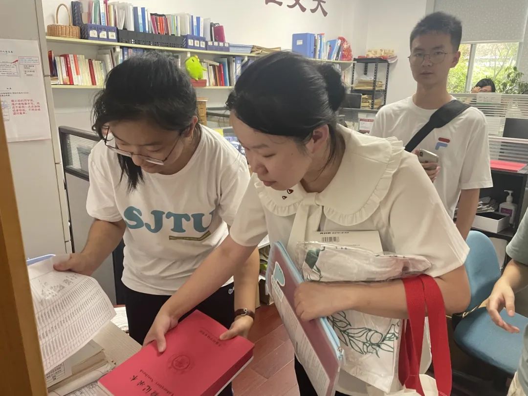 研究生会安排志愿者一对一服务新生,他们身着印有“SJTU”的白色院衫,穿梭在新生报到的现场。一张张热情的笑脸,一句句亲切的问候,一项项贴心的服务,欢迎远方而来的SJTUers。他们耐心地解答问题、细心地指引方向、贴心地提醒入学安排。