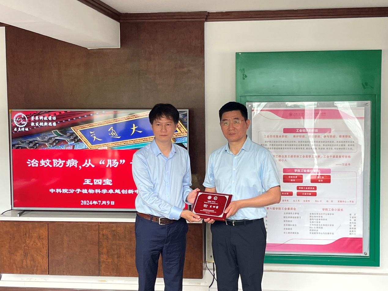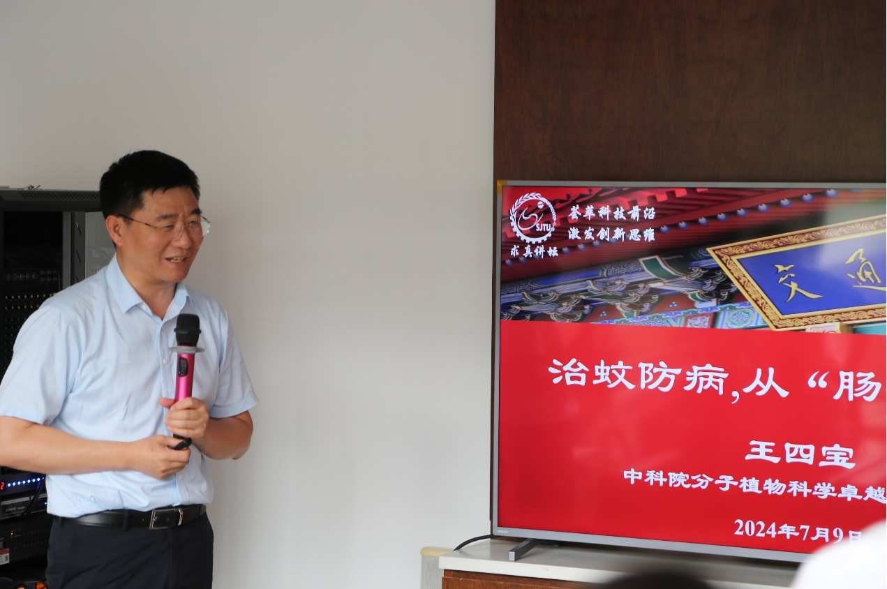 7月9日上午,中国科学院分子植物科学卓越创新中心研究员王四宝教授做客第44期求真讲坛,做题为《治蚊防病,从“肠”计“益”》的主题报告。来自437bwin必赢国际官网生命学科相关院系的教师、博士后、研究生近40人参会。讲坛由437bwin必赢国际官网院长张雁主持。