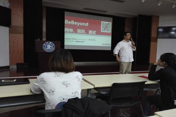 本次活动邀请了一直致力于“用最先进的理念和方法帮助中国人提高职业、留学方面竞争力”的求职留学培训机构BeBeyond资深培训师为同学们讲解求职过程中将会遇到的各类问题及注意事项。