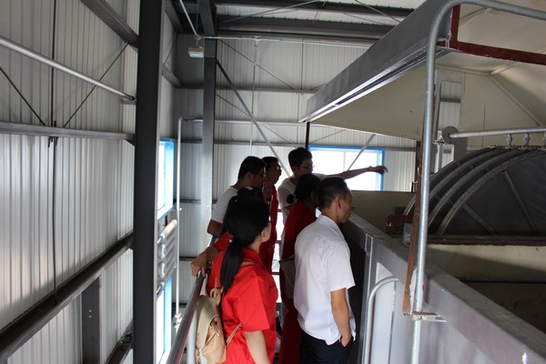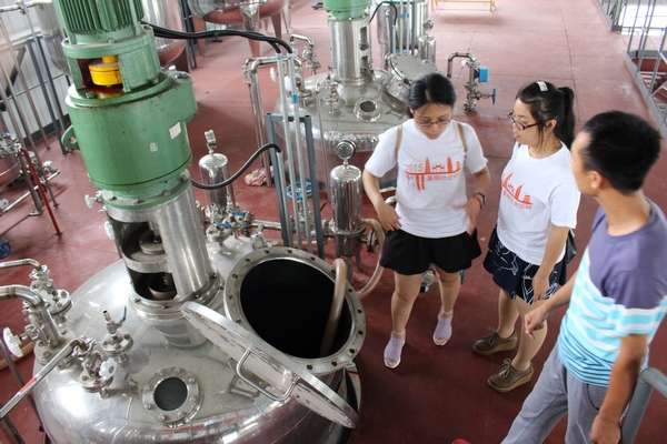 下午,该厂的技术主任张老师带领师生们参观了微生物发酵与生产车间,并详细介绍了其厂的技术特点以及优势。